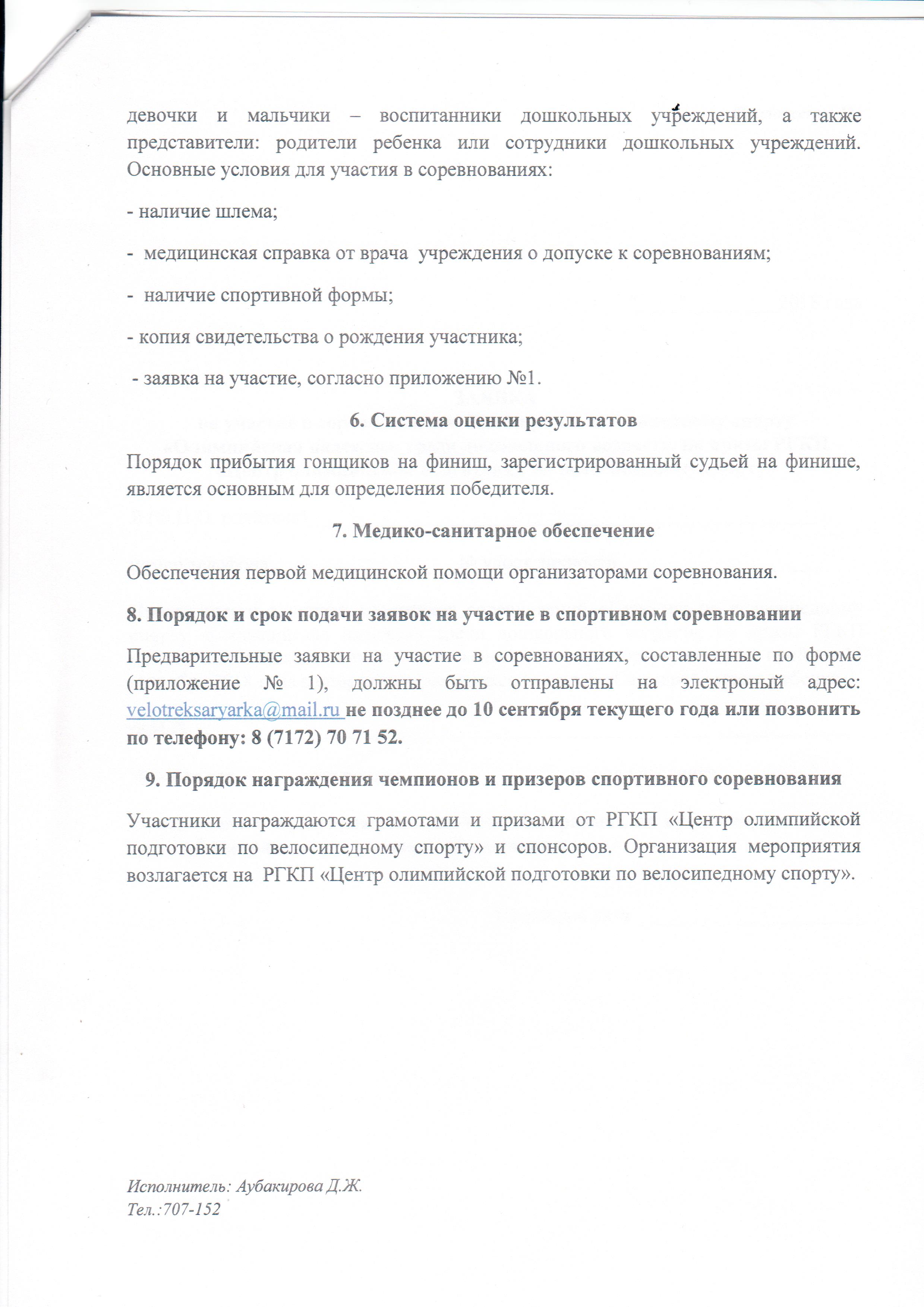 По участию в соревнованиях: 8 (7172) 70 71 52, 8 (775) 456 51 00, 8 (775) 674 69 61.