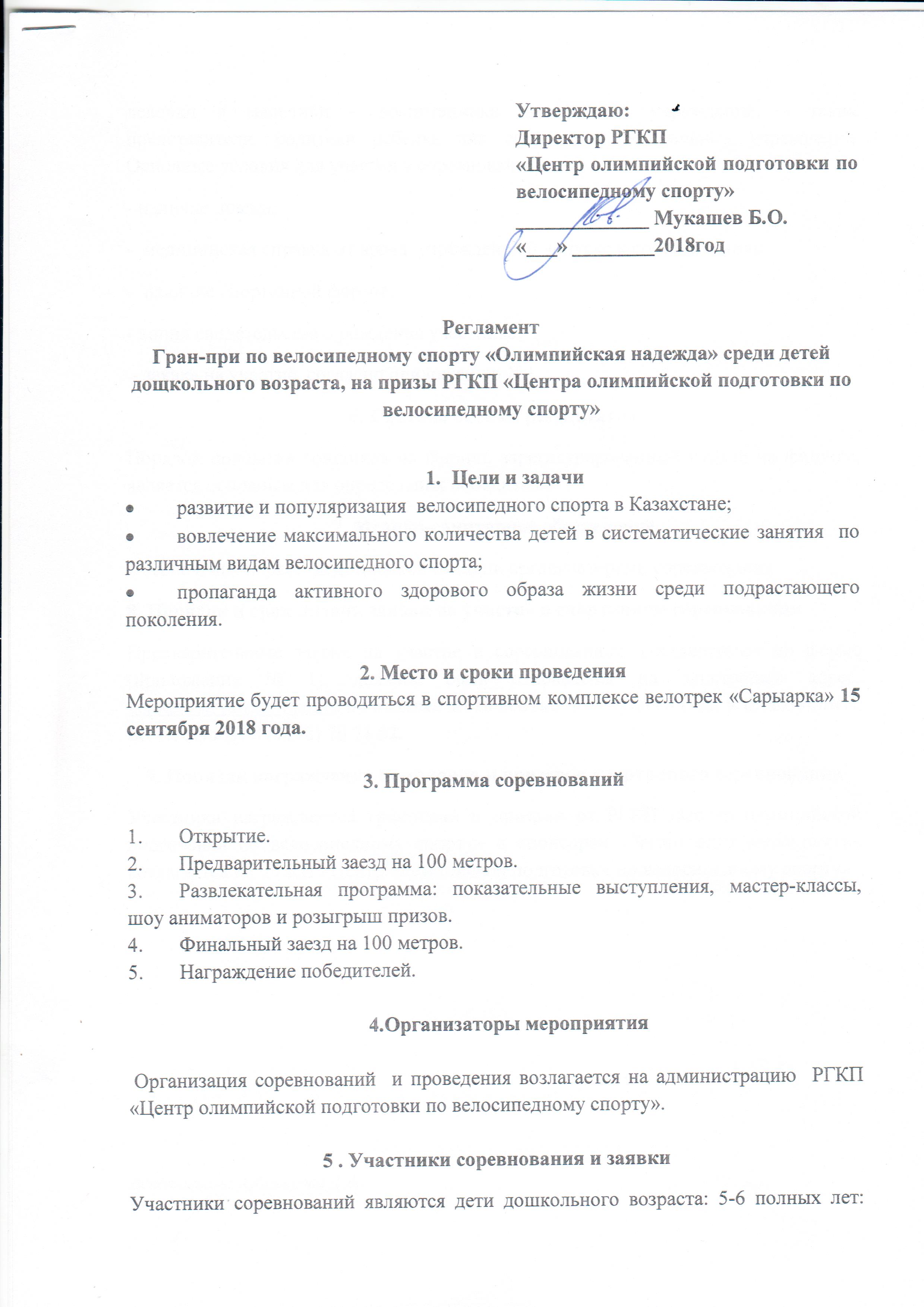 15 сентября в республиканском велотреке «Сарыарка» ожидается проведение II ежегодного соревнования Гран – при по велосипедному спорту «Олимпийская надежда», на призы Центра олимпийской подготовки по велосипедному спорту среди детей дошкольного возраста.